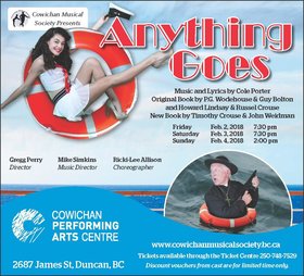The Cowichan Musical Society brings the Tony Award winning, tap-dancing musical, ANYTHING GOES to the stage.