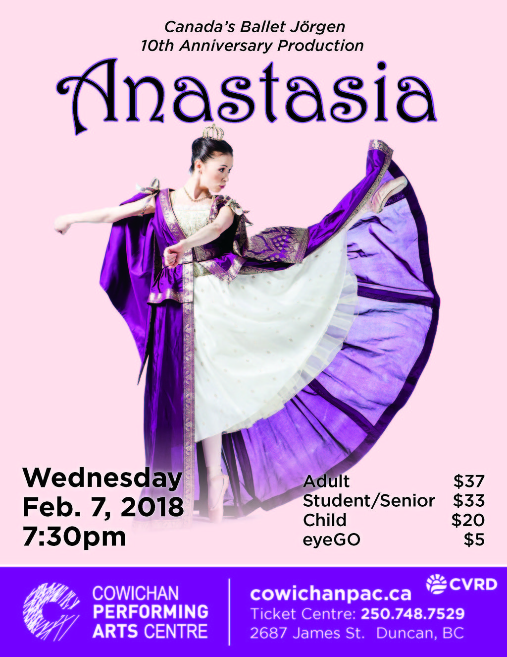 Canada's Ballet Jörgen - Anastasia @ Cowichan Performing Arts Centre Feb 7 2018 - Jan 12th @ Cowichan Performing Arts Centre