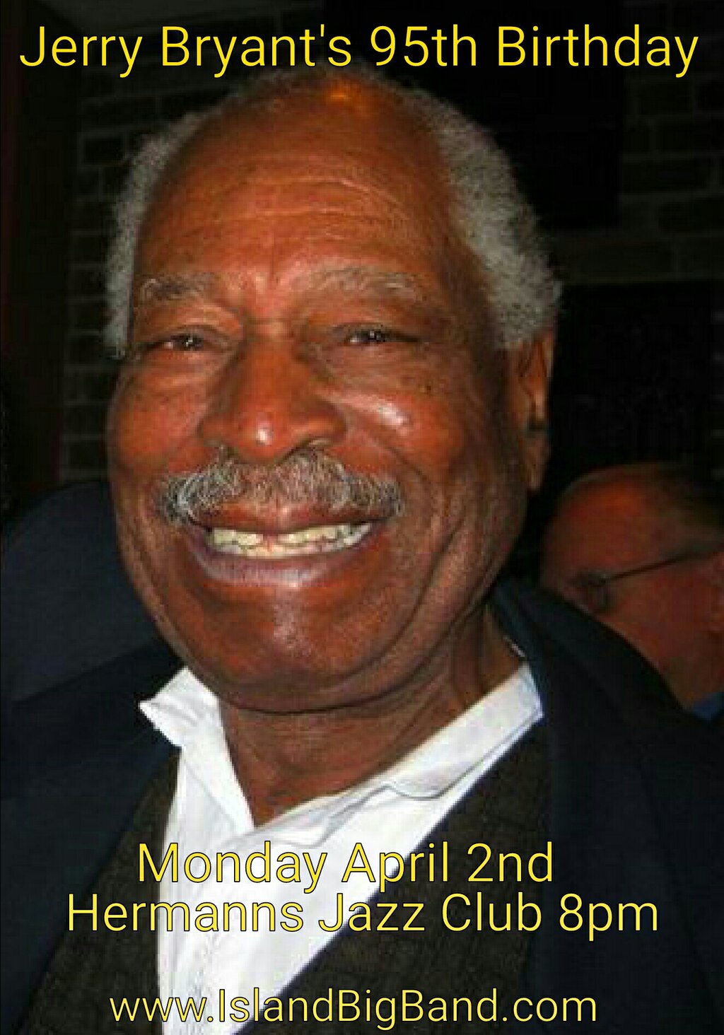 On Monday April 1st 2018 Jerry Bryant turns 95. To the joy of the members of the Island Big Band, Jerry agreed to join the band by request over a decade ago and has since added his musical depth of knowledge, humor, and steeped tradition on the piano and vocals to the bands sound. On the occasion of his 95th birthday The Island Big Band presents a special concert featuring Jerry and a few special guests. The concert features Jerry on Vocals and Piano, backed up by the 20 piece Island Big Band. There is also some surprise guest soloists from a lifetime of music joining the band.