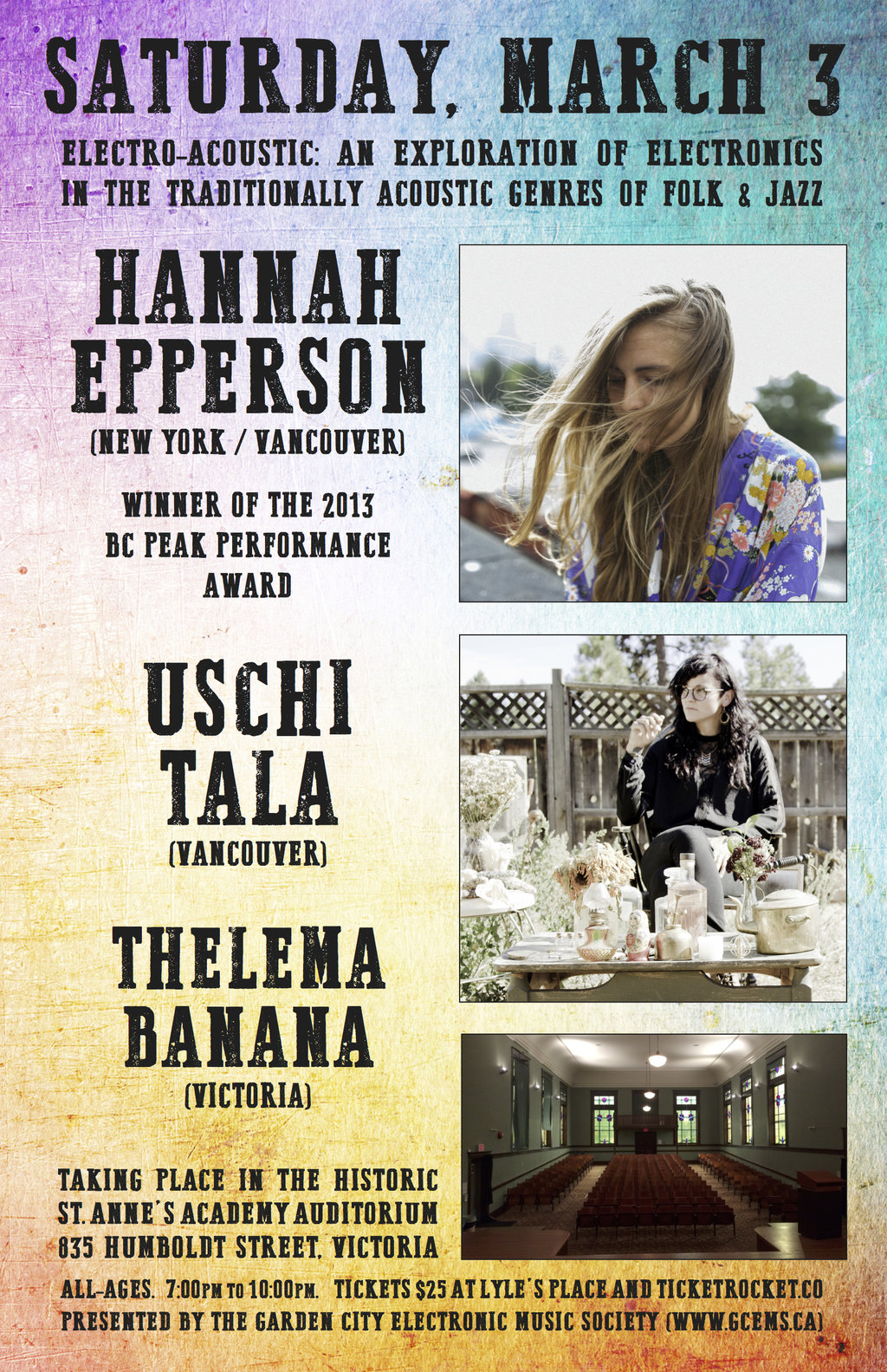 On Saturday, March 3rd, the Garden City Electronic Music Society presents the Electro-Acoustic Showcase, an exploration of electronics within the traditionally acoustic genres of folk music and jazz.