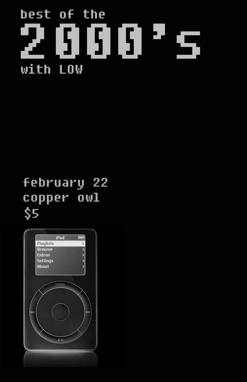 best of the 2000's with: Low @ Copper Owl Feb 22 2018 - Jan 11th @ Copper Owl
