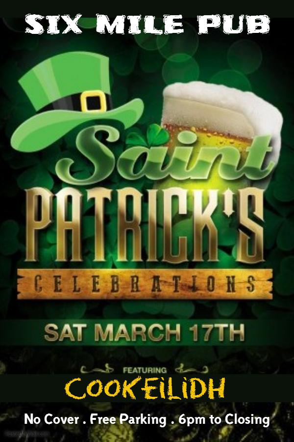 Get your "Green On" and head down to the Six Mile Pub for the happiest St. Patrick's
