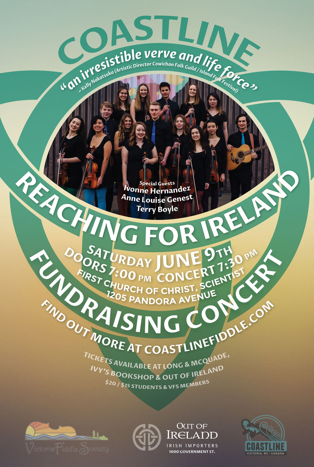 For this special hometown fundraising “Reaching for Ireland” concert, Coastline will be joined by some special guests. Juno award winner and five-time North American fiddle champion, Ivonne Hernandez, Irish singer songwriter Terry Boyle and songwriter and multi instrumentalist Anne Louise Genest.
