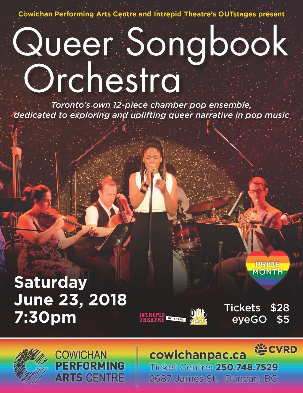 June is Pride Month and in celebration the Cowichan Performing Arts Centre in partnership with Intrepid Theatre’s OUTstages proudly presents The Queer Songbook Orchestra (QSO), Saturday, June 23 at 7:30pm.
