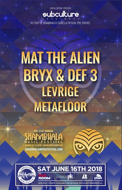Official Shambhala Vancouver Pre Party at SUBculture Saturdays: