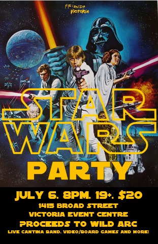 Join us for an epic night of everything Star Wars with proceeds going to Wild Arc (Wild Animal Rehabilitation Centre). We'll have a Modal Nodes cantina tribute band playing your favourite cantina song plus our main headliner The Kenobi Quartet who will be playing dixieland jazz (so come out and dance!). There will be other performances (including Victoria's famous Darth Fiddler and burlesque performers), video games and board games, and a photo booth from 8-10pm with BC's Outer Rim Garrison (check them out here: http://outerrimgarrison.com/). Dress up of course! If you love Star Wars and animals you won't want to miss this! Tickets are $20.
