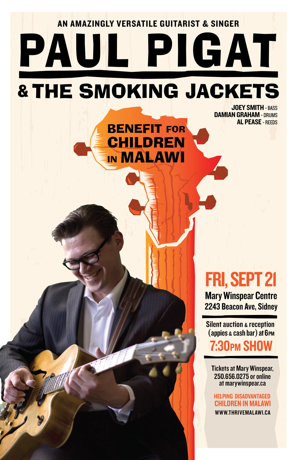 Paul Pigat & the Smoking Jackets - A Malawi Benefit: Paul Pigat (virtuoso guitarist and singer), Damian Graham (drums), Joey Smith (bass), Al Pease (reeds)