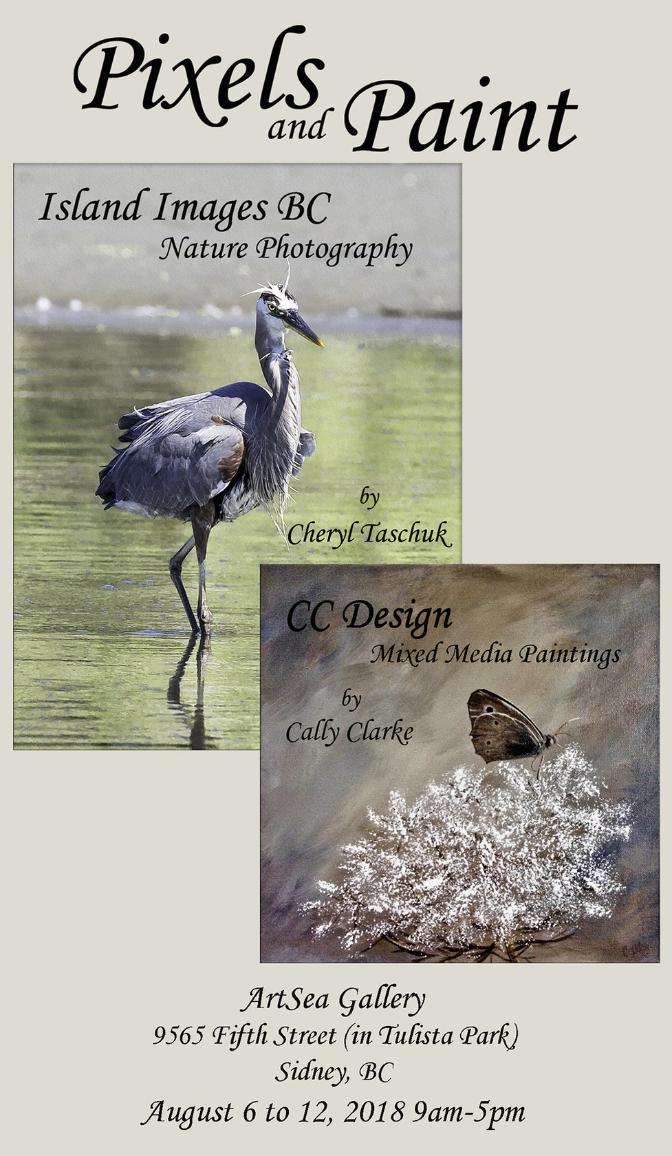 Photographic art by Cheryl Taschuk of Island Images BC and paintings by Cally Clarke.