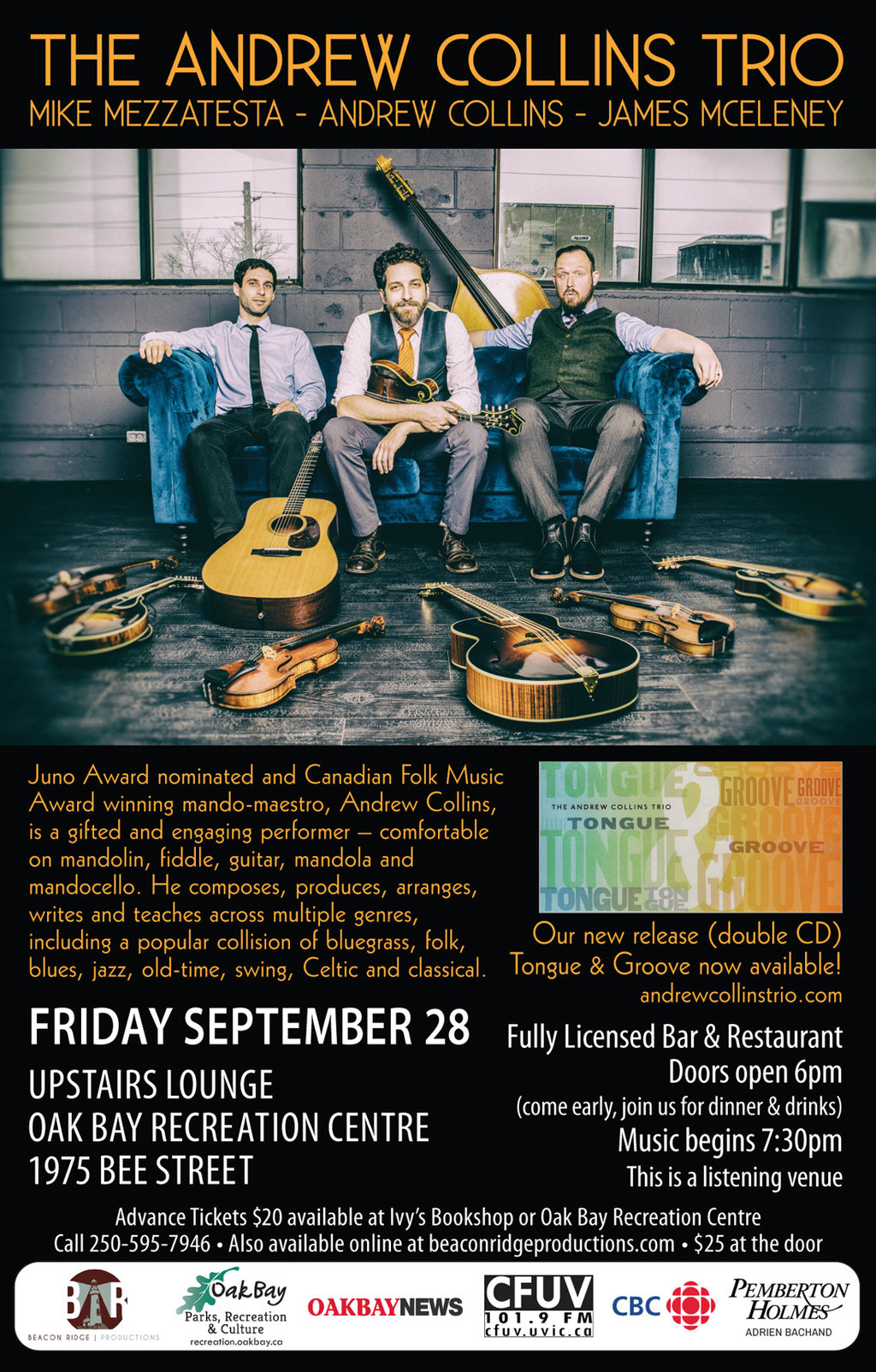 JUNO Nominated & 5X Canadian Folk Music Award Winning: Andrew Collins Trio