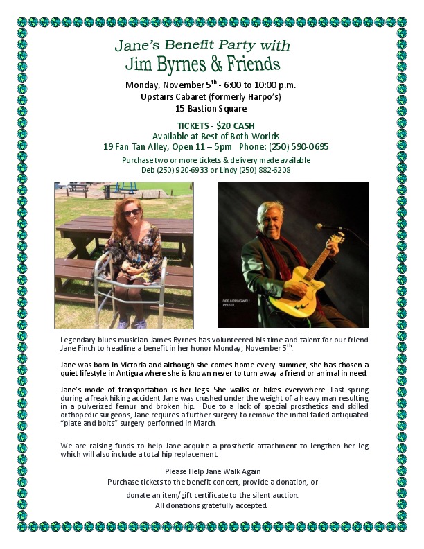 Jane's Benefit Party with Jim Byrnes & Friends - Upstairs Lounge (formerly Harpos) at #15 Bastion Square.