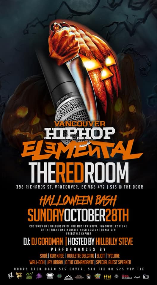HipHop Halloween Bash presented by Elemental Hip Hop @ The Red Room Oct 28 2018 - Jan 6th @ The Red Room