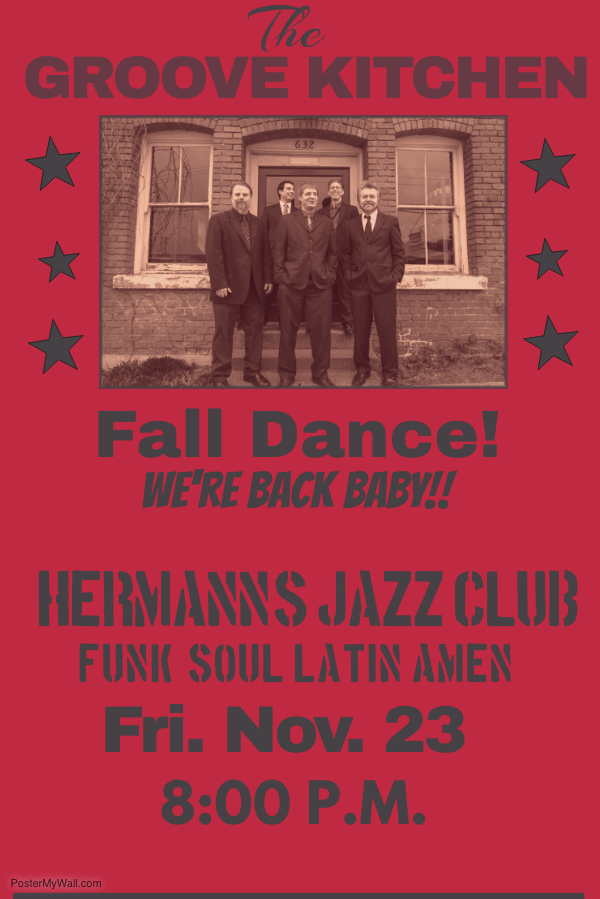 Victoria's favourite funk-soul band Groove Kitchen makes returns to Hermann's Jazz Club for a rip-roaring evening of music. If you love to dance, this is your chance. Fun reinventions from everything to James Brown to Earth Wind and Fire to Nelly. Tickets $20 and Long and McQuade and Eventbrite. All ages show. Licenced restaurant with dance floor.