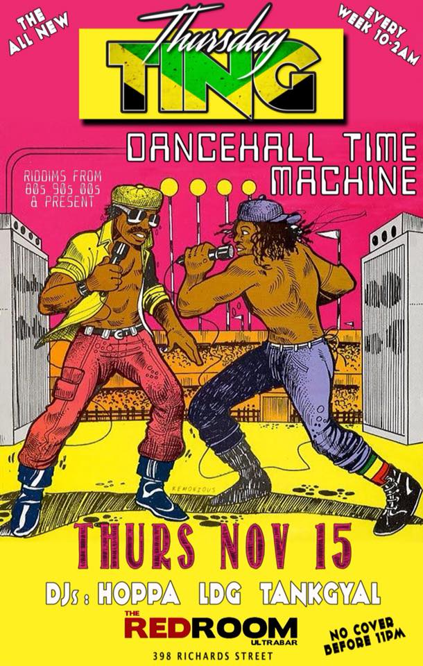 This week at Ting inside the Red Room we’re playing all your favourite riddims from the 80’s, 90’s, 00’s to present day as we take a trip through the Dancehall Time Machine. Come experience Jamaican music through the power of the PK Sound the way it was meant to be heard: with maximum BASS! DJs Hoppa and LDG join a Tank Gyal behind the decks. No cover till 11!