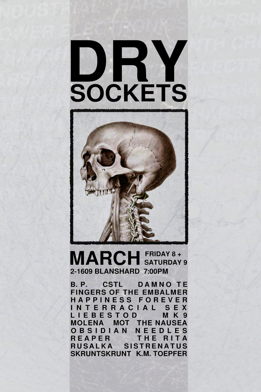 Dry Sockets: The Rita, MK9, Rusalka, Interracial Sex, Liebestod, Obsidian Needles, B. P., MOLENA, THE NAUSEA , Fingers Of The Embalmer, Reaper, Mot, CSTL, Sistrenatus, Skrunt Skrunt, K. M. Toepfer, Happiness Forever, Damno Te