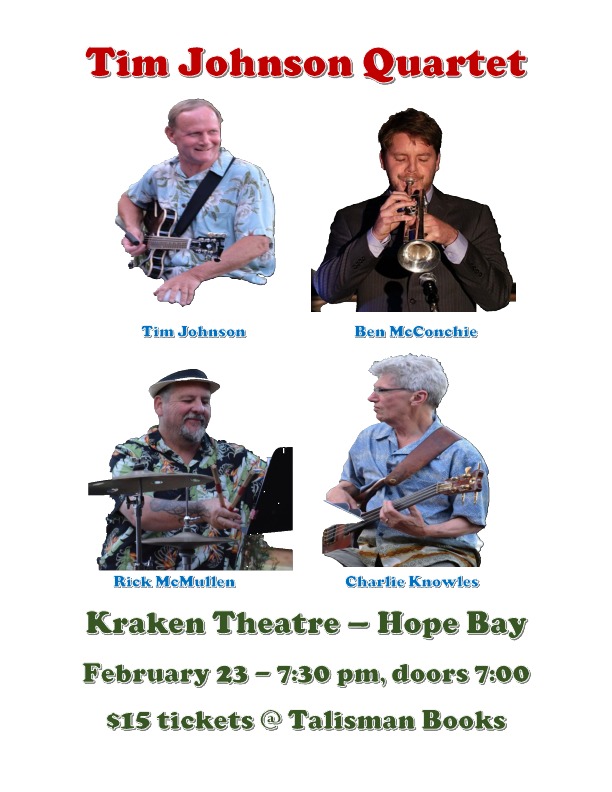 Tim Johnson Quartet @ Kraken Theatre at Hope Bay Feb 23 2019 - Feb 19th @ Kraken Theatre at Hope Bay