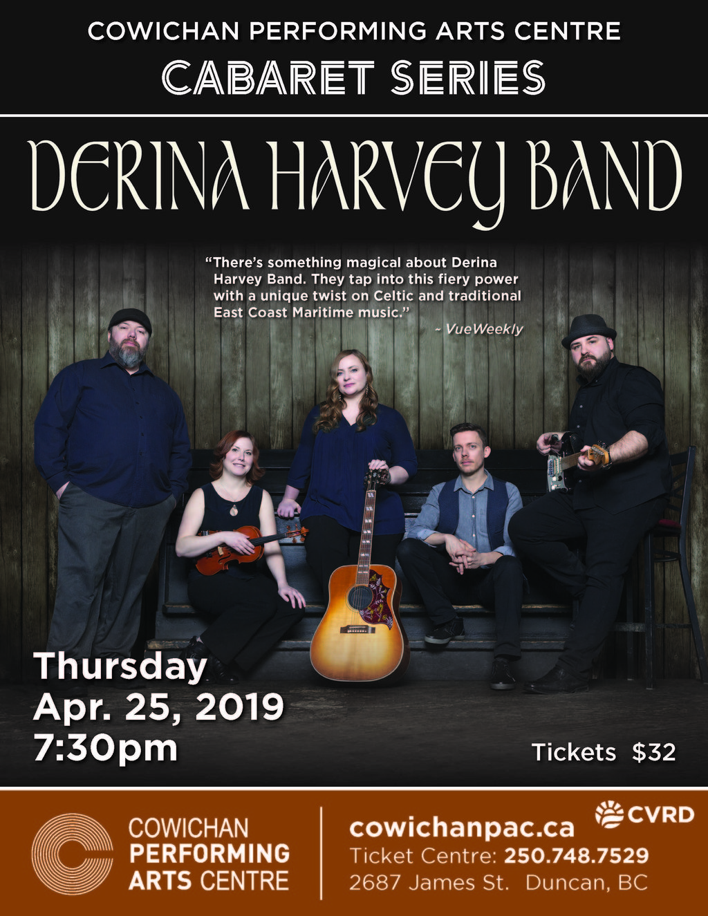 Fearless front-woman Derina Harvey leads this Alberta-based Celtic-rock act, who offer an authentic east-coast experience with a fresh take on traditional tunes as well as their own original jigs and reels. Their rocky, rhythmic undertow is layered with guitars, fiddle, and topped by Derina’s powerful voice. These transplanted east-coasters have earned a reputation with their high-energy live show, leaving many an audience out-of-breath and hollering from their seats!