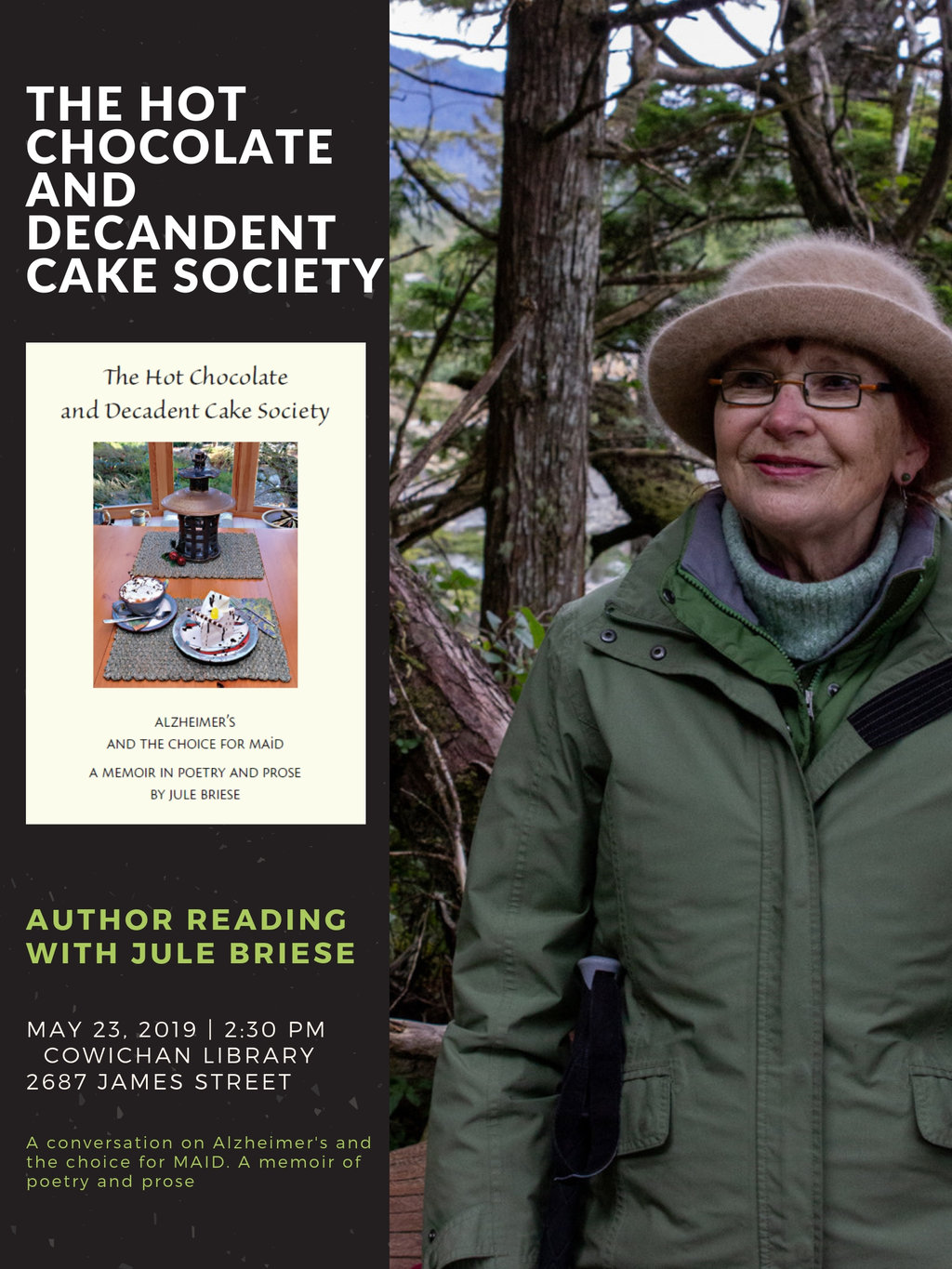 Qualicum Beach author Jule Briese reads from "The Hot Chocolate And Decadent Cake Society: Alzheimer’s And A Choice For MAiD (A memoir in poetry and prose)."