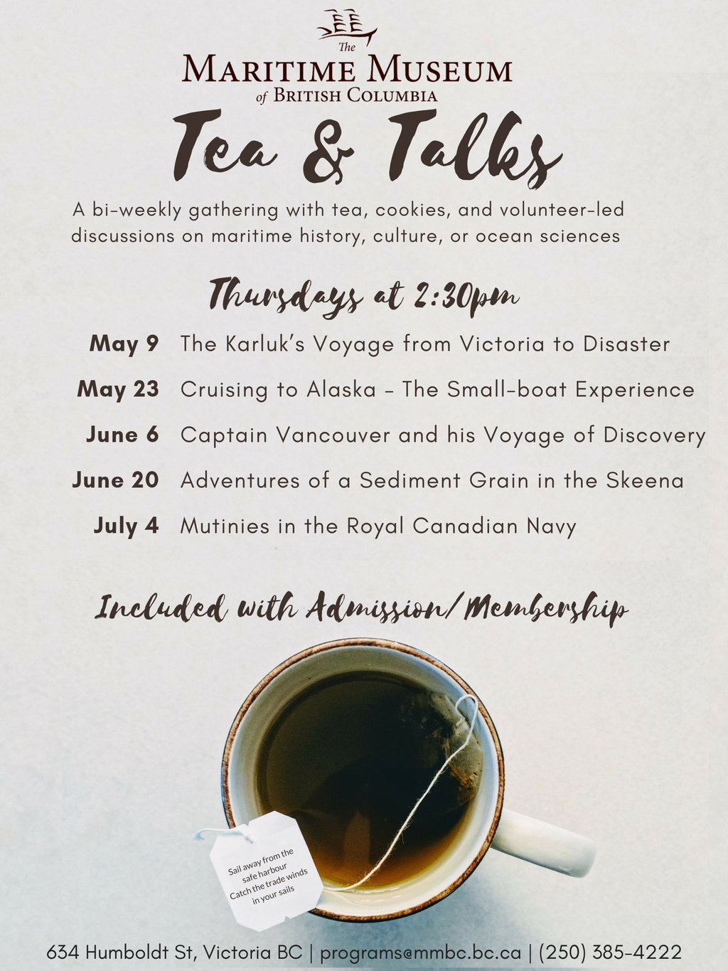 Tea and Talks @ Maritime Museum of BC May 23 2019 - Feb 20th @ Maritime Museum of BC