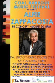 Alfie Zappacosta is one of Canada’s premier songwriters and performers with chart topping hits and a recording and acting career that has spanned 40 years. “Start Again,” “Passion,” “When I Fall in Love Again,” and “Nothing Can Stand In Your Way” became staples on Canadian radio and Zappacosta became a personified Rock Star. He continues to evolve as an artist by “doing it his way,” an effort that has been rewarded with an impressive song catalogue and a discerning loyal fan base.