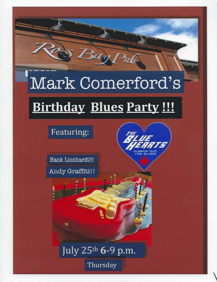 Mark Comerford Birthday Blues Show: Mark Comerford, Andy Graffiti, Hank Lionhardt @ Ross Bay Pub Jul 25 2019 - Jan 8th @ Ross Bay Pub