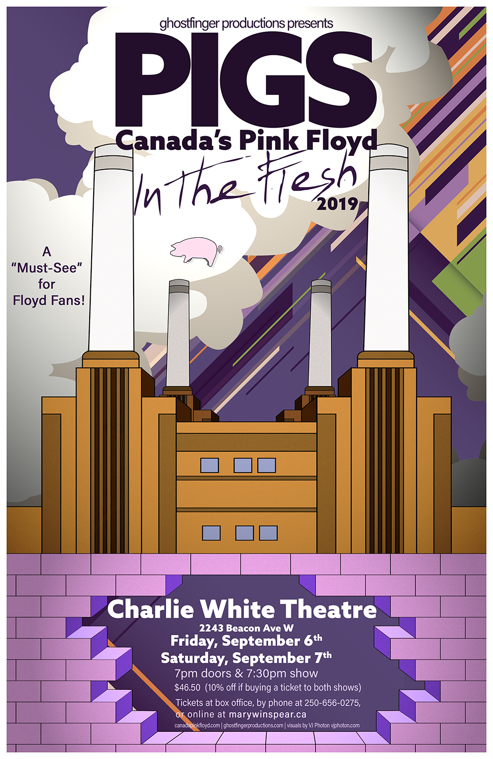 PIGS: Canada's Pink Floyd are hitting the road in the fall of 2019 to thrill audiences across North America on their In The Flesh Tour. PIGS deliver the music of one of the greatest bands of all time with exacting precision certain to delight and amaze every Pink Floyd fanatic. Performing many favourites from The Wall, The Dark Side of the Moon, Wish You Were Here and Animals along with other classic cuts and rarities from Meddle to The Division Bell, the show is not to be missed!