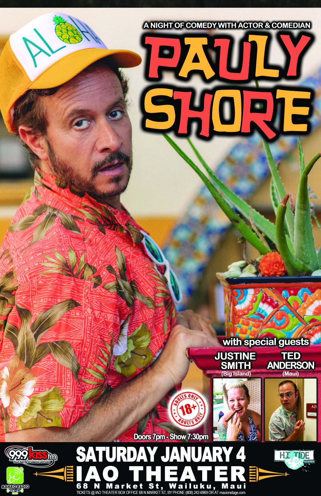 A night of comedy with Actor and Comedian: Pauly Shore, Justine Smith, Ted Anderson @ Iao Theater Jan 4 2020 - Jan 12th @ Iao Theater