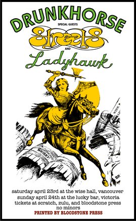 From Oakland California, Tee Pee Recording Artists Drunkhorse with Vancouver Skate Punk Legends S.T.R.E.E.T.S. and Ladyhawk. Keep in mind that it's a Sunday show - doors at 8pm, show ends at Midnight.