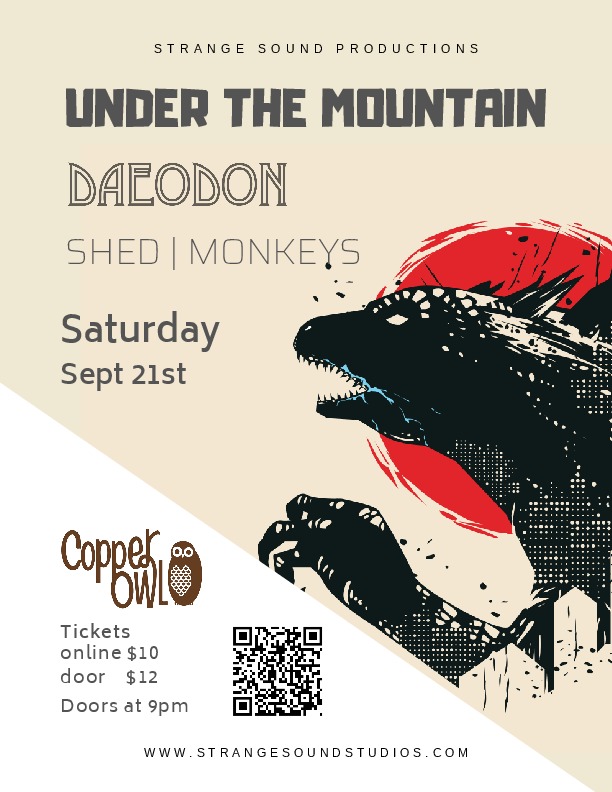 On Saturday September 21st see Under the Mountain, Daeodon, & Shed Monkeys live at Copper Owl.