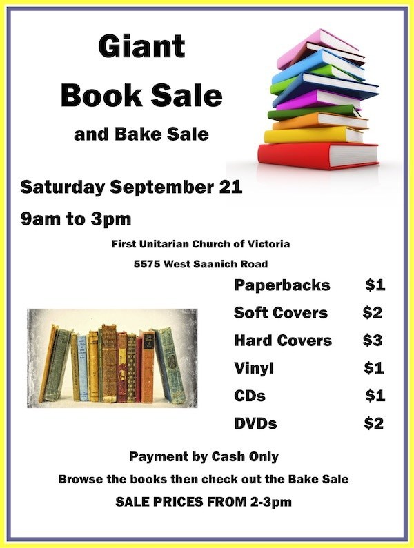 First Unitarian Church of Victoria Used Book Sale @ First Unitarian Church of Victoria Sep 21 2019 - Feb 19th @ First Unitarian Church of Victoria