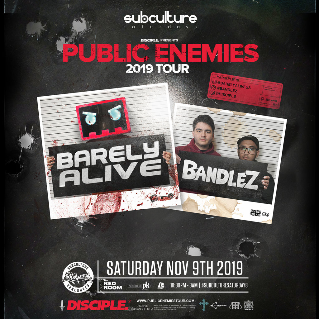 Public Enemies Tour at SUBculture: Barely Alive, Bandlez  @ The Red Room Nov 9 2019 - Jan 8th @ The Red Room