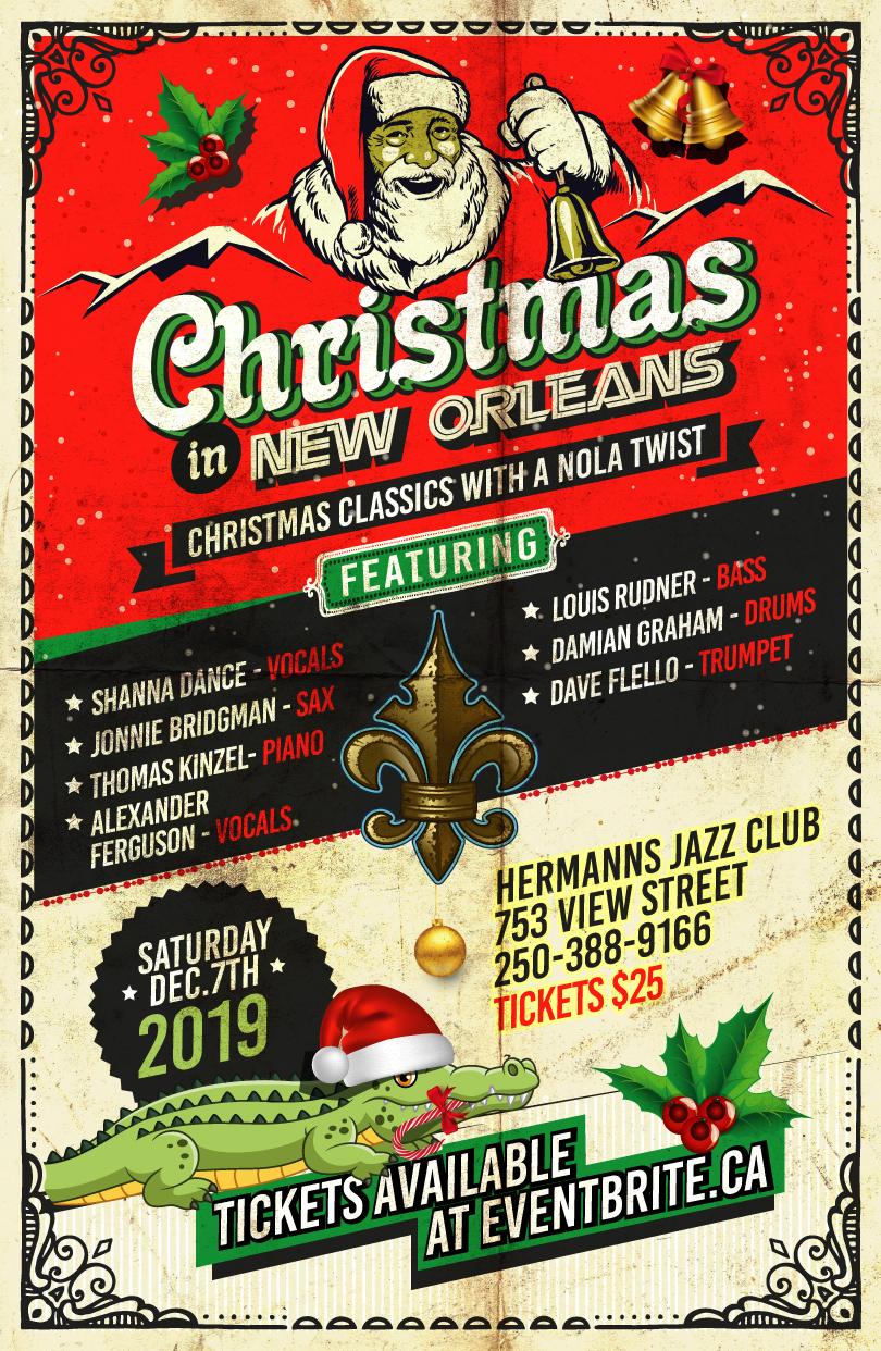 Vocalist Shanna Dance and Saxophonist Jonnie Bridgman present "Christmas in New Orleans", in Victoria! Christmas classics with a Nola twist! Shanna and Jonnie are back at Hermann's with a dynamite band for another tribute to the music of New Orleans, this time with a festive twist! You'll hear Christmas and New Orleans Classics in the style of Louis Armstrong, Dr. John, Professor Longhair, Aaron Neville, the Meters, Sharon Jones, Stevie Wonder and more! The last show at Hermann's by this all-star band was a complete sell-out so get your tickets soon right away!