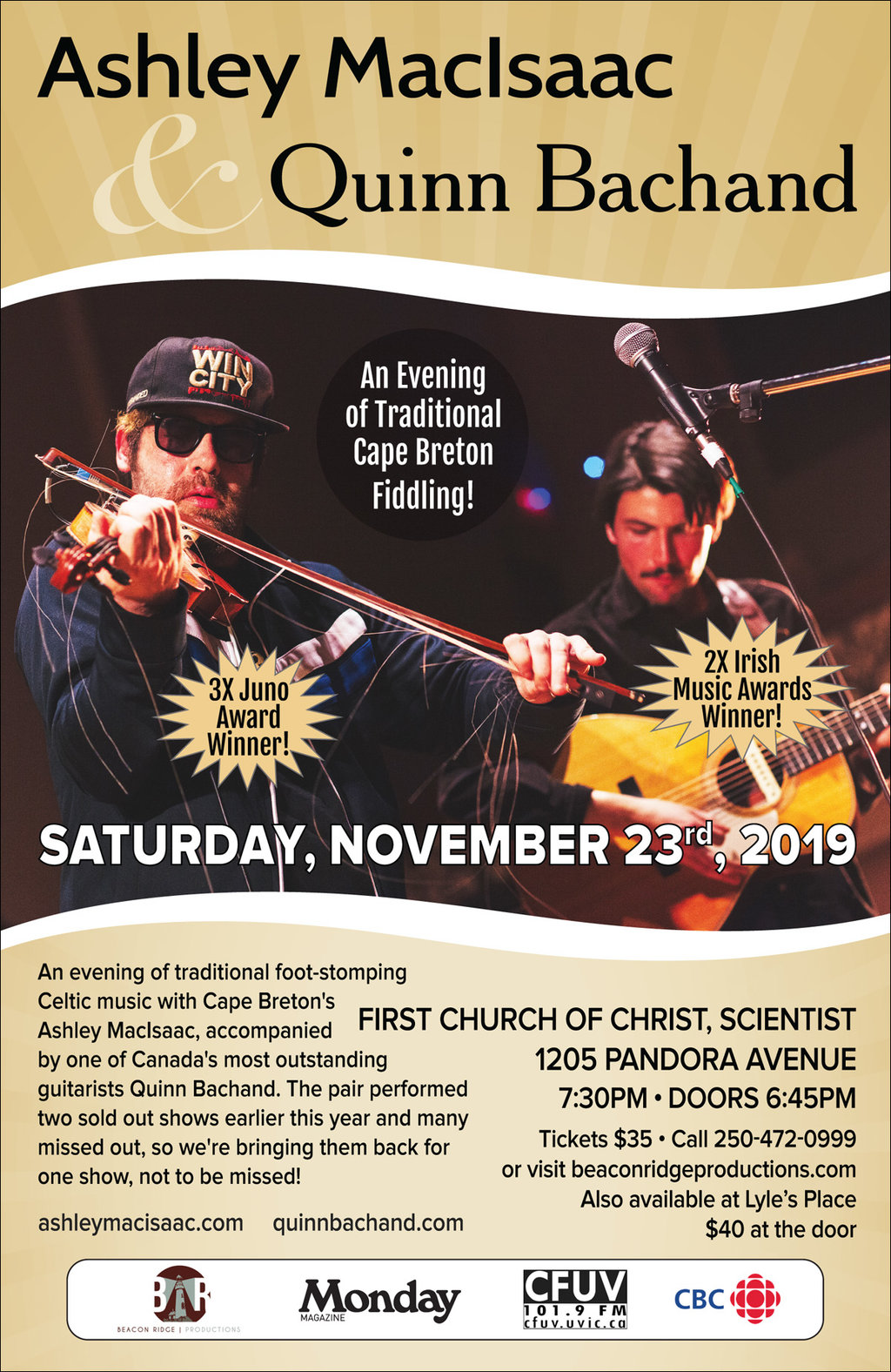 ADVANCED TICKETS AT LYLE'S PLACE, 770 YATES STREET AND ONLINE AT WWW.BEACONRIDGEPRODUCTIONS.COM