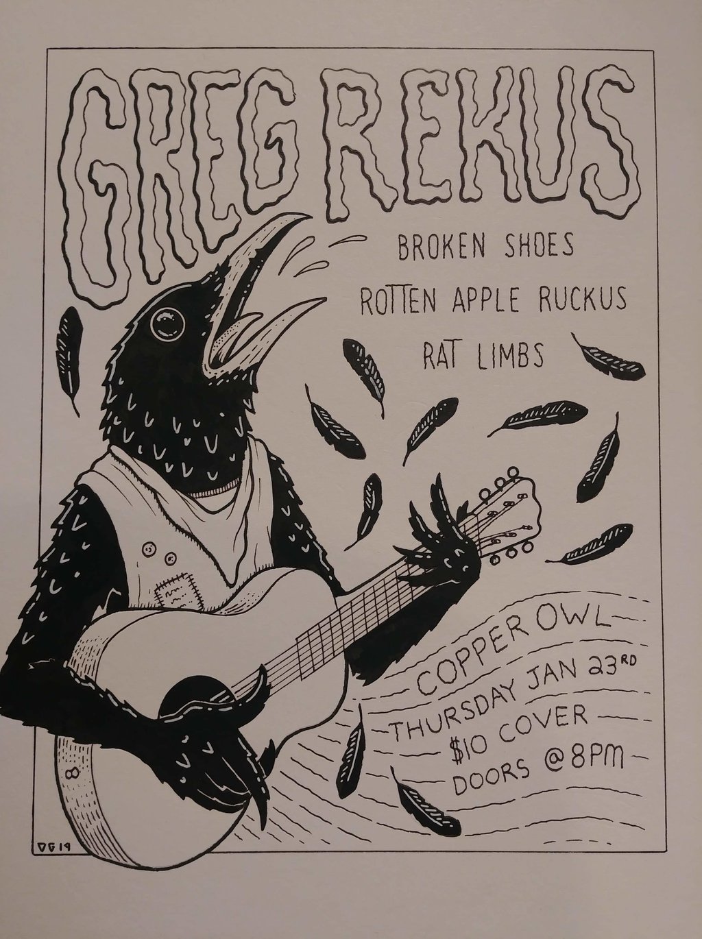 This Riot Folk Punker stomps up a storm! Greg Rekus first hit the road as a solo artist in March 2011. Since then, he has played some of the greatest punk music festivals around, including The Fest, Pouzza Fest, and Groezrock Music Festival. He has toured Europe three years in a row from London to Ukraine. He has toured the United States and Canada over ten times. Finally, he has released two full length albums and a 7 inch in several different countries through a network of indie labels. Greg’s Passion for music is bursting at the seams. It is the driving force that keeps him on the road 6-7 months a year and cranking out album after album.
