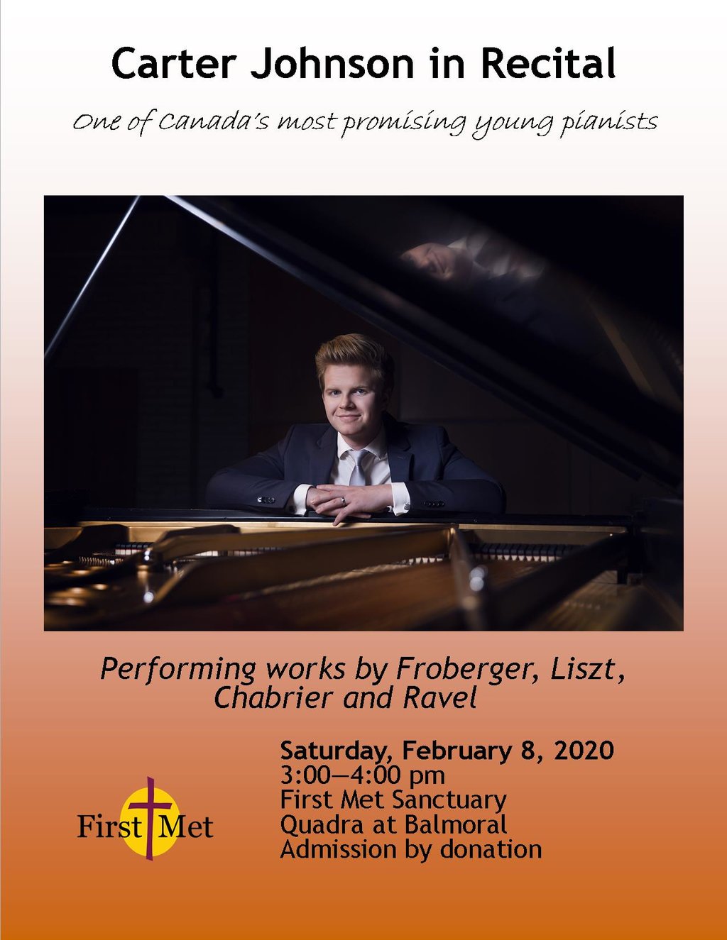Carter Johnson in Recital - Feb 12th @ United Commons (First Metropolitan United Church)