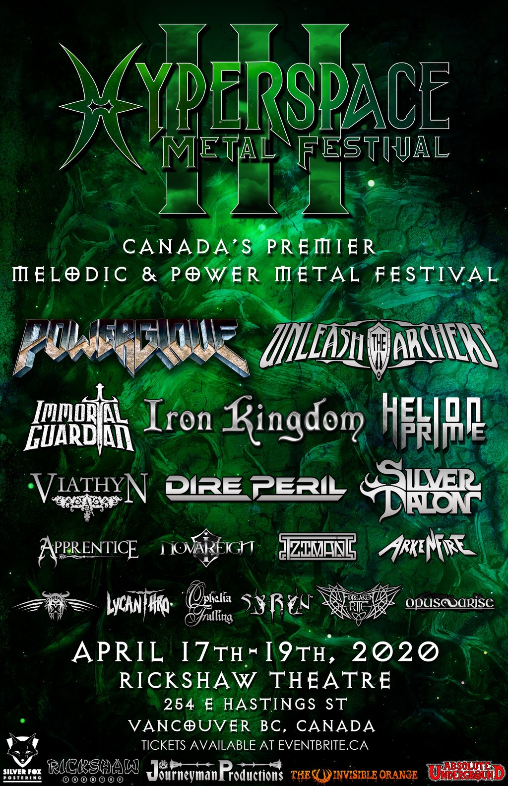 Hyperspace Metal festival, organized by Journeyman Productions is returning to the Rickshaw Theatre in Vancouver, Canada on April 17-19, 2020.