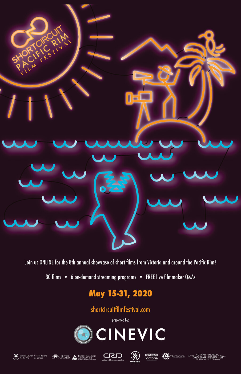 Each year, Short Circuit welcomes filmmakers from over 30 countries around the Pacific Ocean to Victoria, British Columbia, Canada. While we cannot gather at the cinema this year, CineVic is pleased to offer #watchfromhome options to a worldwide audience while supporting local and international artists at the same time.