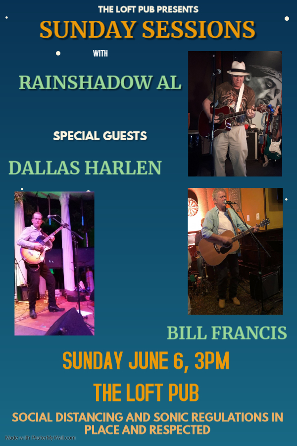 Sunday Sessions with Rainshadow Al: Rainshadow Al, Dallas Harlen, Bill Francis @ The Loft (Victoria) Jun 6 2021 - Dec 29th @ The Loft (Victoria)