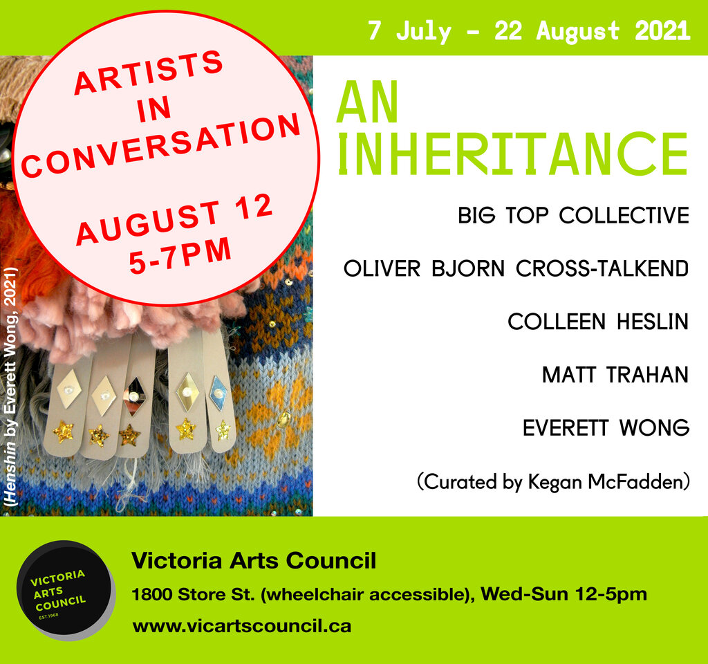 Join us on Thursday, August 12 from 5-7pm for an intimate conversation between a few of the artists in our current exhibition, An Inheritance. Moderated by the curator, Kegan McFadden.