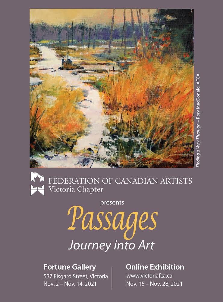 Viewing is open to the public from November 2 - 14 and artwork in the show is available for purchase. Covid protocols will be in place. The Fortune Gallery show will be followed by an online exhibition at www.victoriafca.ca from Nov 15 - 28.