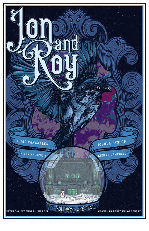 Jon and Roy are excited to be back in Cowichan with their Holiday Special. It’s easy to fall for the effortless, amiable charm of Jon Middleton and Roy Vizer. Seasoned musicians and longtime friends, their brand of indie folk-rock is a genre in itself; one that evokes winding stretches of road and the pull of the journey. With over 50 million streams worldwide, it’s clear many others have been captivated by Jon and Roy and the stories they tell. Join Jon and Roy and their special and very talented guests for a Holiday Special. It’s the one their family of fans were hoping would be back and it is!