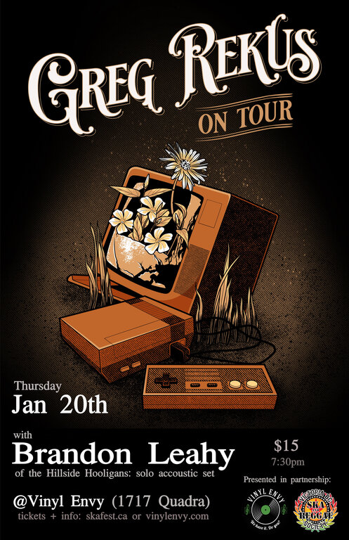 The unstoppable Greg Rekus is bringing his high energy, stomp-box-stopming folk-punk show to Victoria with an intimate small capacity show at Vinyl Envy.