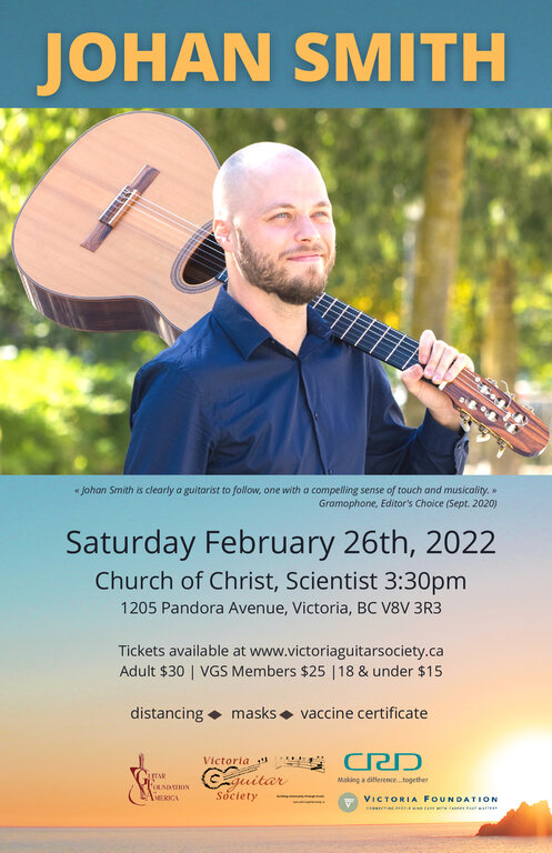 Victoria Guitar Society presents GFA competition winner Johan Smith - Jan 7th @ First Church of Christ, Scientist