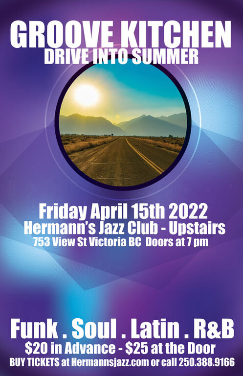 Time to get revved up and spring back into the action with good time gurus, Groove Kitchen! These seasoned chefs have been serving their blend of finger-licking funk, picante pop, luscious Latin, and sizzling soul jams everywhere from the Victoria International jazz Fest to Butchart Gardens… from the Music in the Park series to the Moss Street Paint in… as well as many of the hottest rooms in town and beyond. Come dig the driving dance numbers, party down, and cruise into the season of smooth with us!!