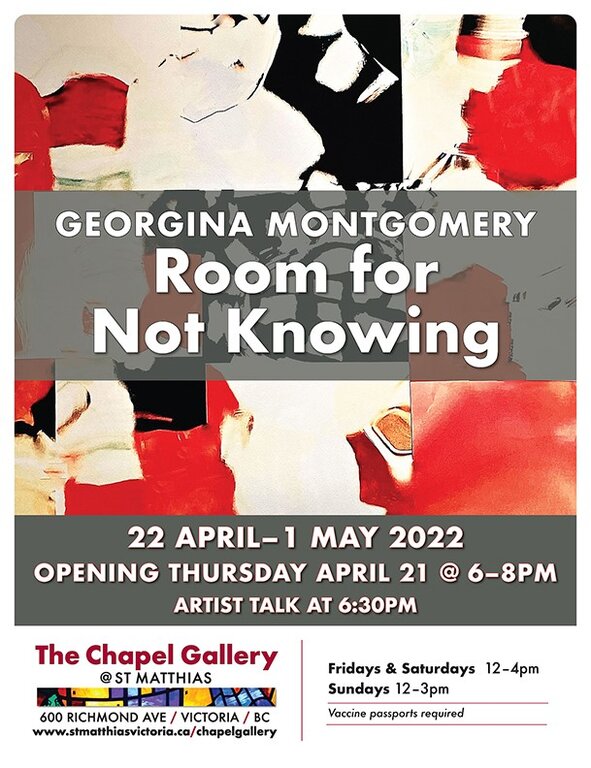 Room for Not Knowing features unique photography-based single and assembled print works from Georgina’s “painting with crazed light” project, Caustic Optimism. For more information about her process and the project, visit georginamontgomeryart.com.