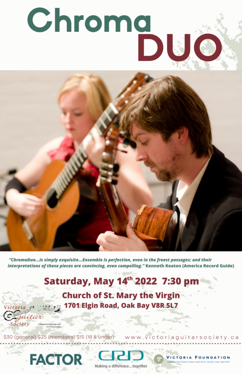Victoria Guitar Society presents acclaimed classical guitarists "ChromaDuo" - Feb 12th @ St. Mary's Anglican Church