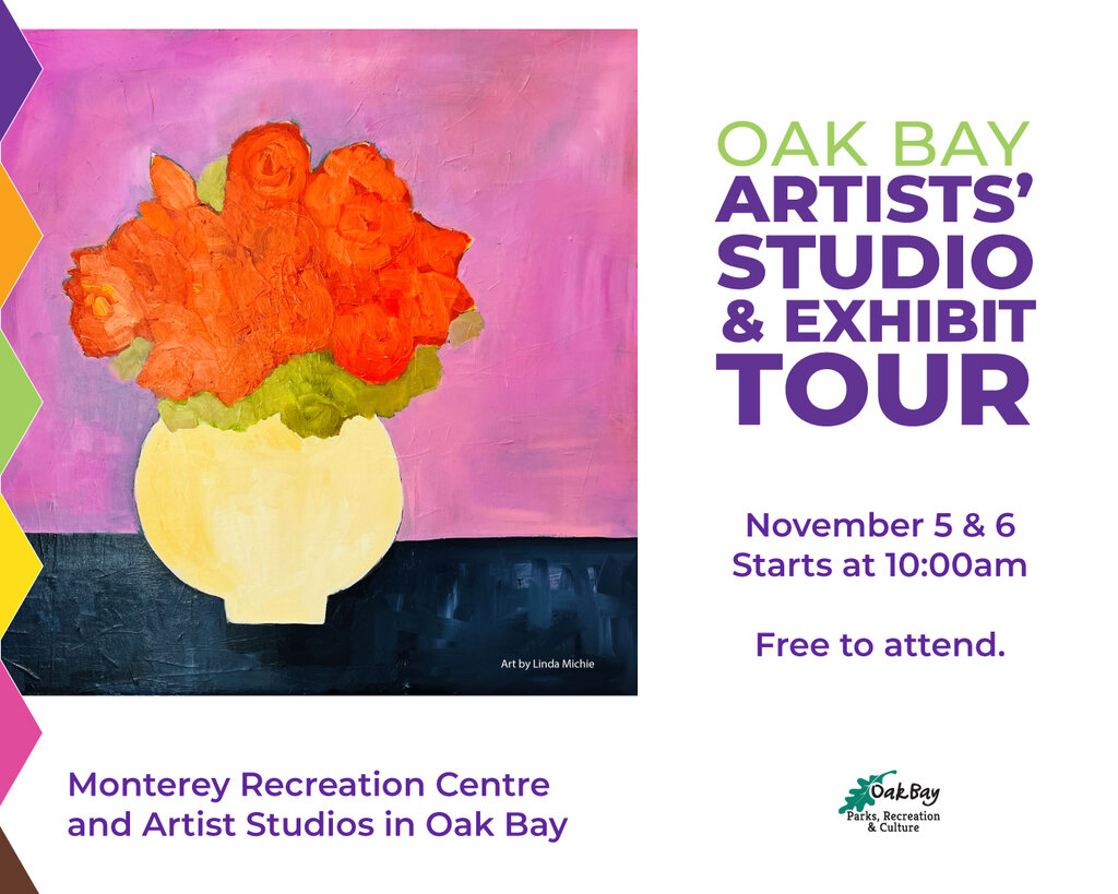 An opportunity to view and purchase visual art by Oak Bay artists. Paintings in watercolour, acrylic, and oil, as well as photography, linocuts, collage, art cards, ceramics and more will be on display and for sale. View the art, meet the artists, visit a professional artists studio and learn about artists’ inspiration and process.