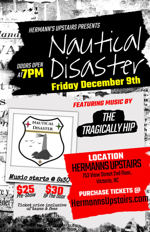 Kick of the festive season with the hippest ticket in town! Nautical Disaster is bringing the best of The Tragically Hip to the Hermann's Upstairs stage and it'll be a night you won't want to miss!