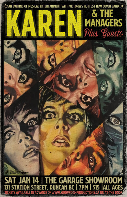 All ages rawk: Karen and the managers, Saanich Damage  @ Duncan Showroom Jan 14 2023 - Feb 13th @ Duncan Showroom