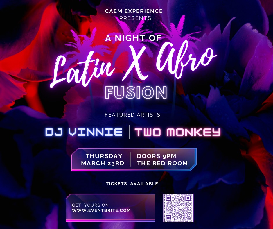 Join us for a night of Latin x Afro beats at The Red Room. Featured artists: DJ VINNIE & TWO MONKEY Event is 19+ - Hosted and curated by CAEM EXPERIENCE