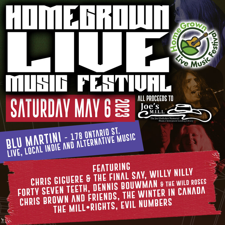HomeGrown Live Music Festival: Evil Numbers, The Mill•Rights, The Winter in Canada, Dennis Bouwman & The Wild Roses, Forty Seven Teeth, Willy Nilly, Chris Giguère